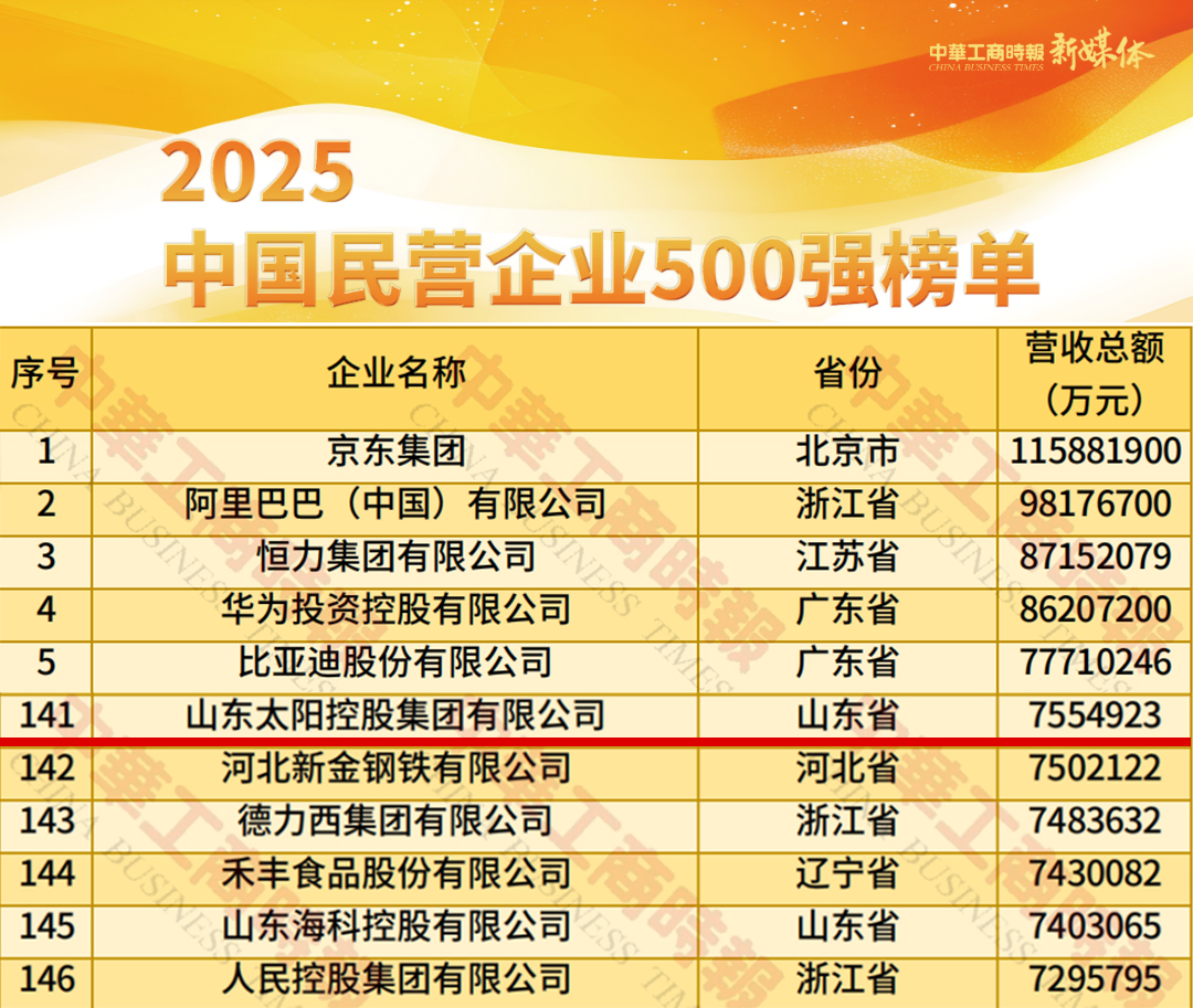 8月28日,2025中国民营企业500强发布会暨全国优强民企助力辽宁全面振兴新突破大会在辽宁召开,会上发布了“2025中国民营企业500强”“2025中国制造业民营企业500强”等榜单。其中,公司控股股东山东CA88官网控股集团有限公司荣列“2025中国民营企业500强”第141位,荣列“2025中国制造业民营企业500强”第101位,排名均实现稳步提升,企业的发展质量、效益和核心竞争力显著增强,高质量发